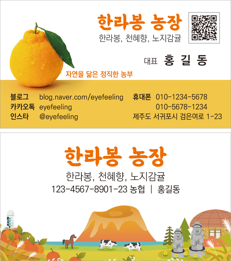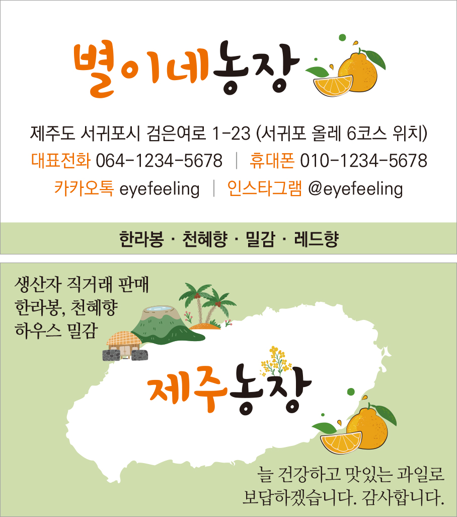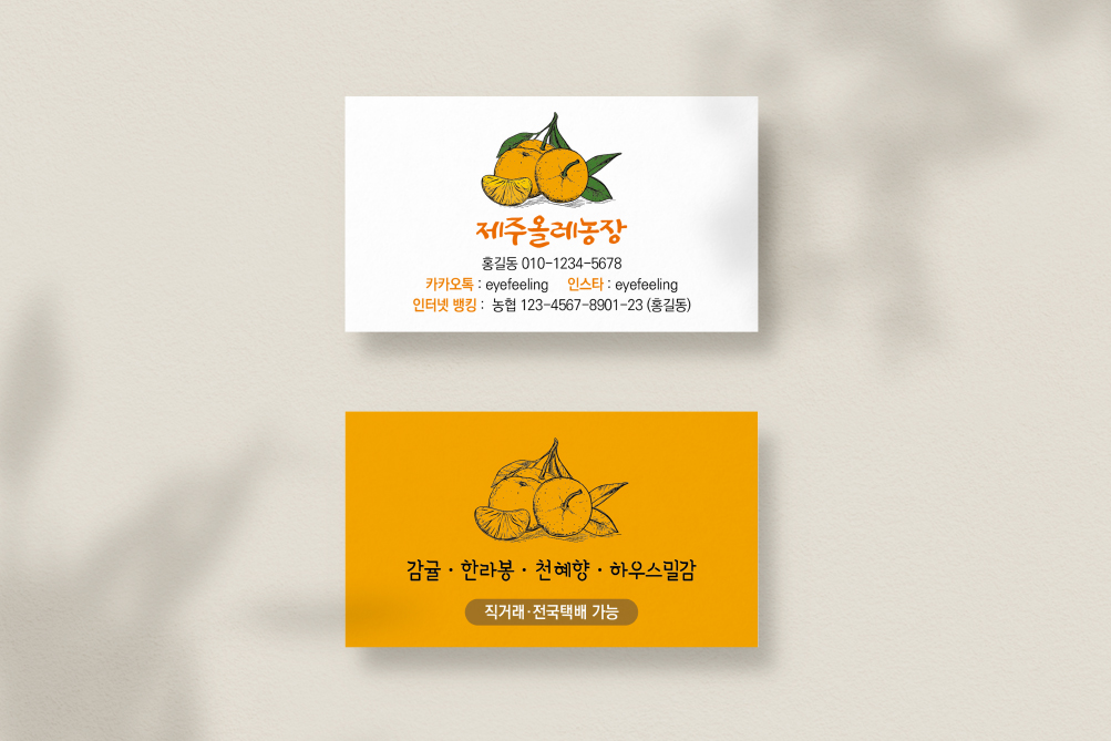 감귤 제주 농장 명함 디자인 인쇄 제작 황금향 레드향 한라봉 천혜향 명함