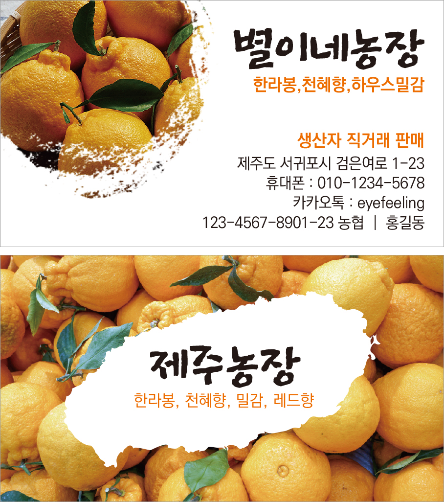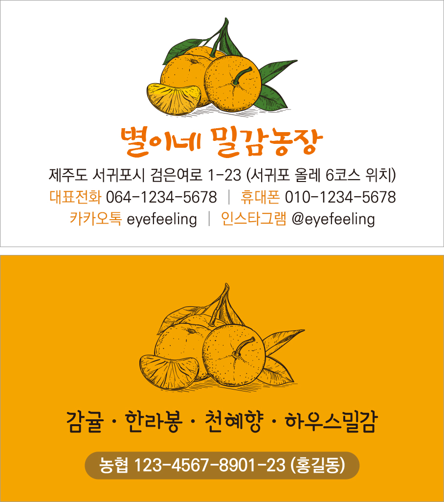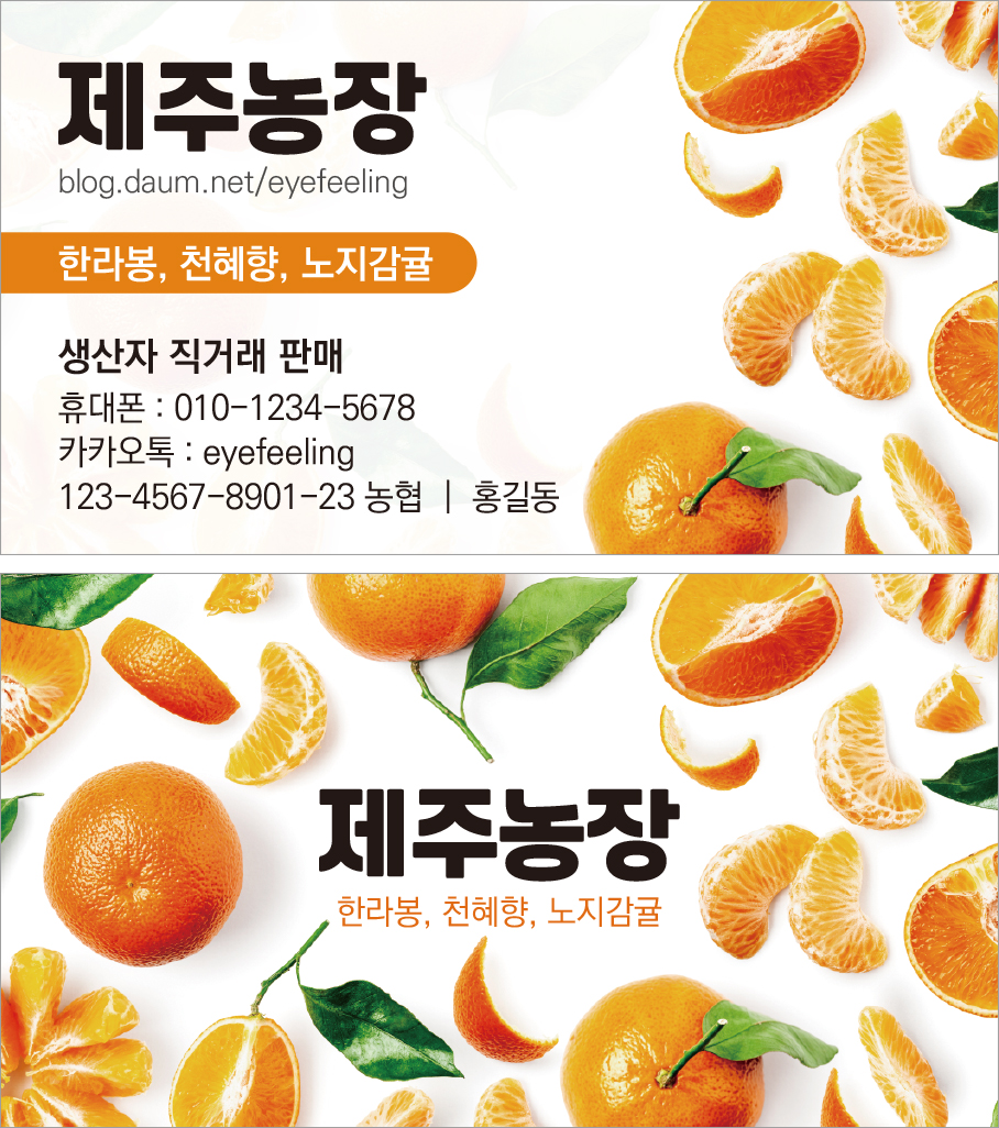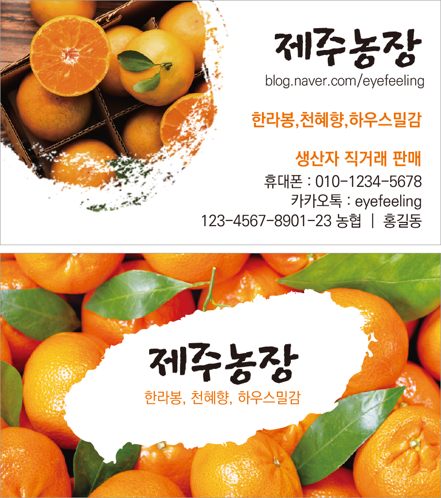 감귤 제주 농장 명함 디자인 인쇄 제작 황금향 레드향 한라봉 천혜향 명함