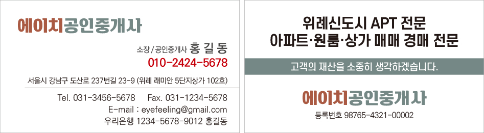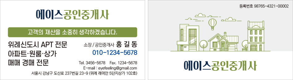 공인중개사사무소 부동산 명함 디자인 인쇄 제작 만들기