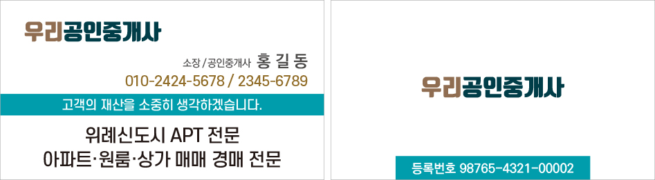 공인중개사 사무소를 위한 명함입니다.