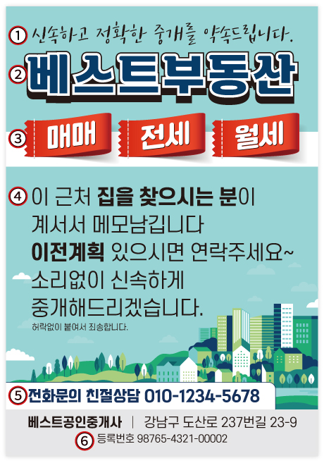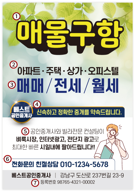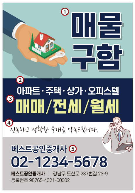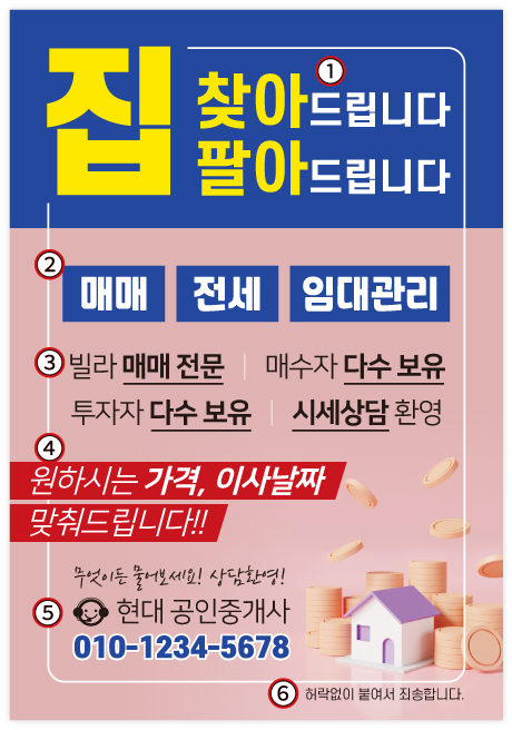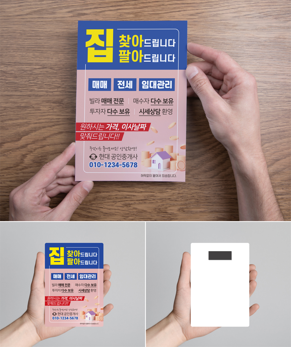 부동산 공인중개사사무소 종이자석 전단지 디자인 인쇄 제작 만들기