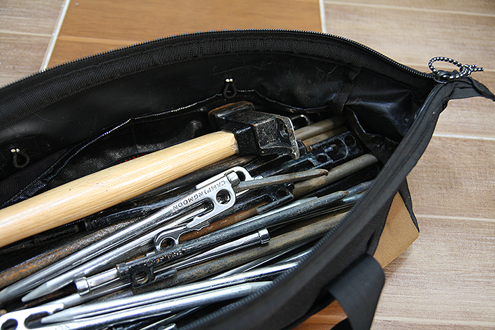 팩 가방에 들어있는 것들은 소개하자면 일단 팩다운을 위한 해머(콜맨 제품)가 있고