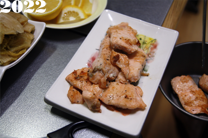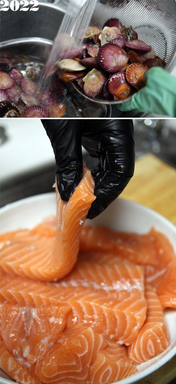 전날 장 봐온 연어와 가리비를 청주와 소금으로 정리해준다. 2022년은 이 두 가지 음식으로 마무리하기로 했다.