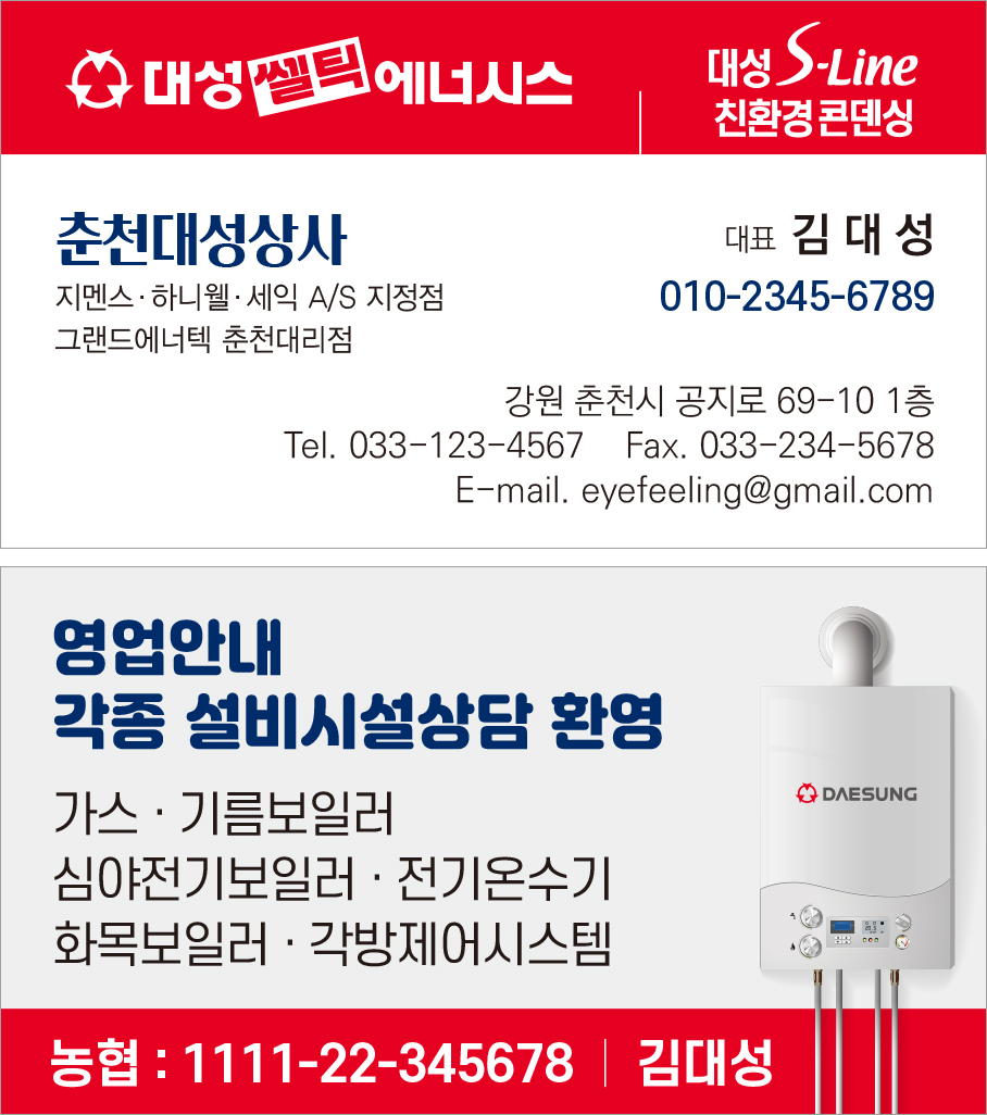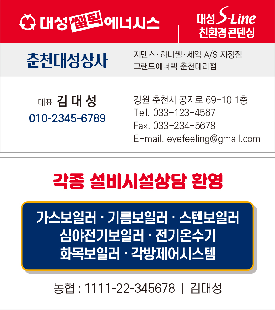 대성쎌틱에너시스 에스라인 친환경콘덴싱 보일러 명함 디자인 인쇄 제작 만들기