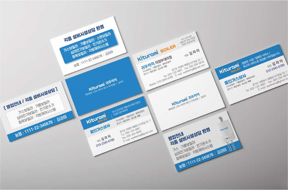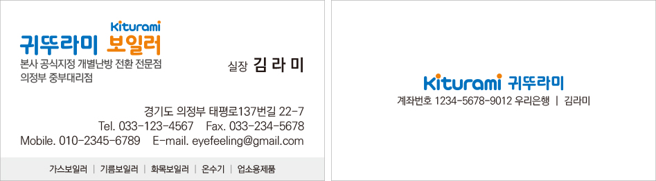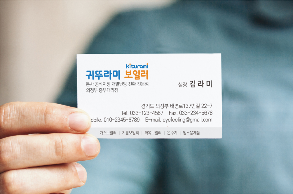 귀뚜라미 거꾸로 콘덴싱 보일러 명함 디자인 인쇄 제작 만들기