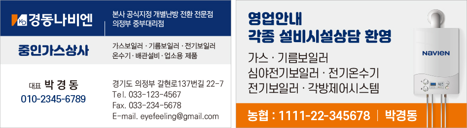경동나비엔 보일러 명함 디자인 인쇄 제작 만들기