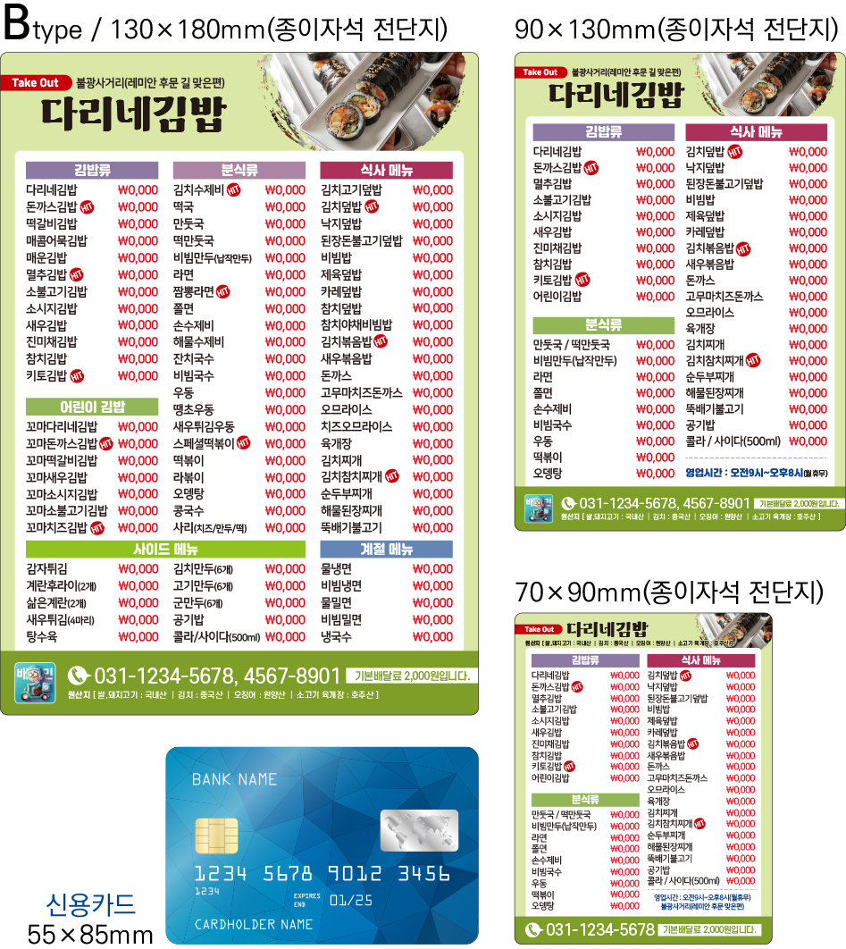 90×130mm(배달음식 메뉴 전단, 종이자석 전단지)