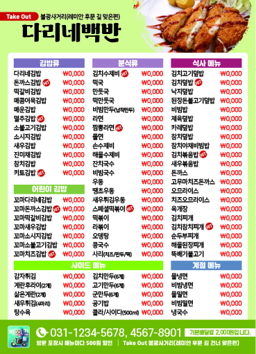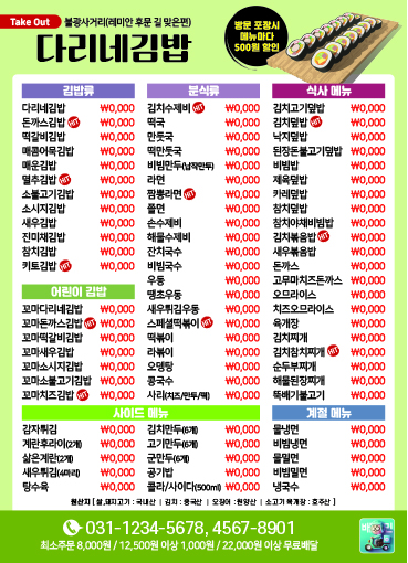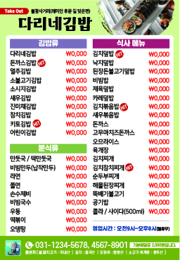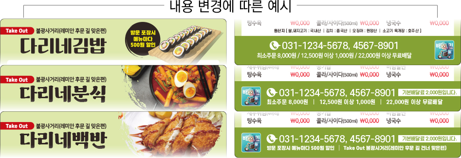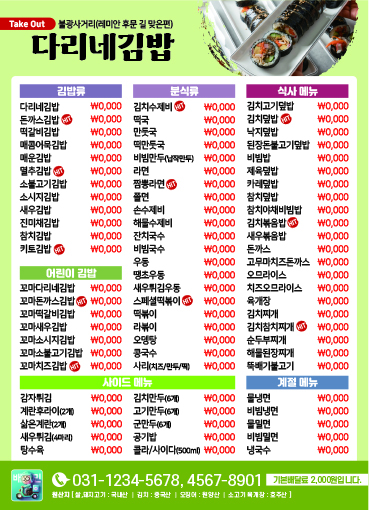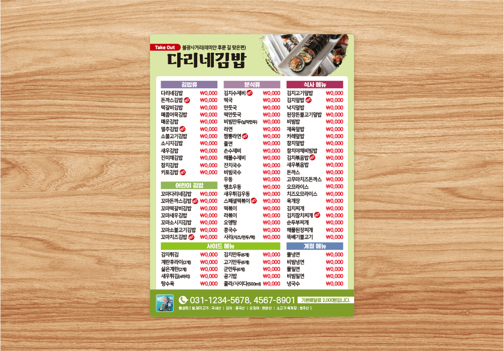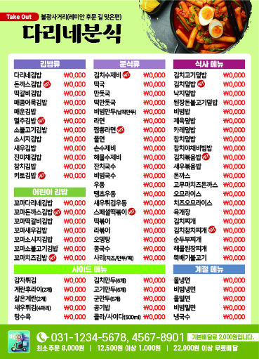 식당 분식 카페 배달음식 메뉴 자석 전단지 디자인 인쇄 제작 만들기-2