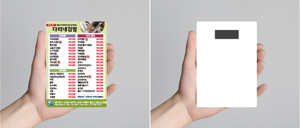 70×90mm(배달음식 메뉴 전단, 종이자석 전단지)
