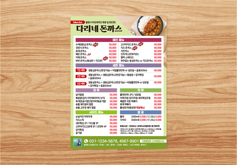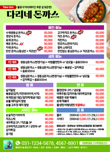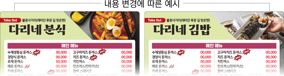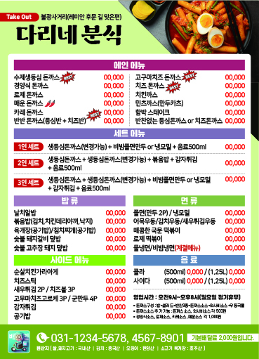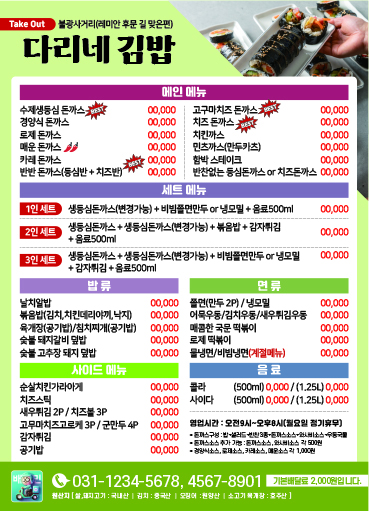 식당 분식 카페 배달음식 메뉴 자석 전단지 디자인 인쇄 제작 만들기-4