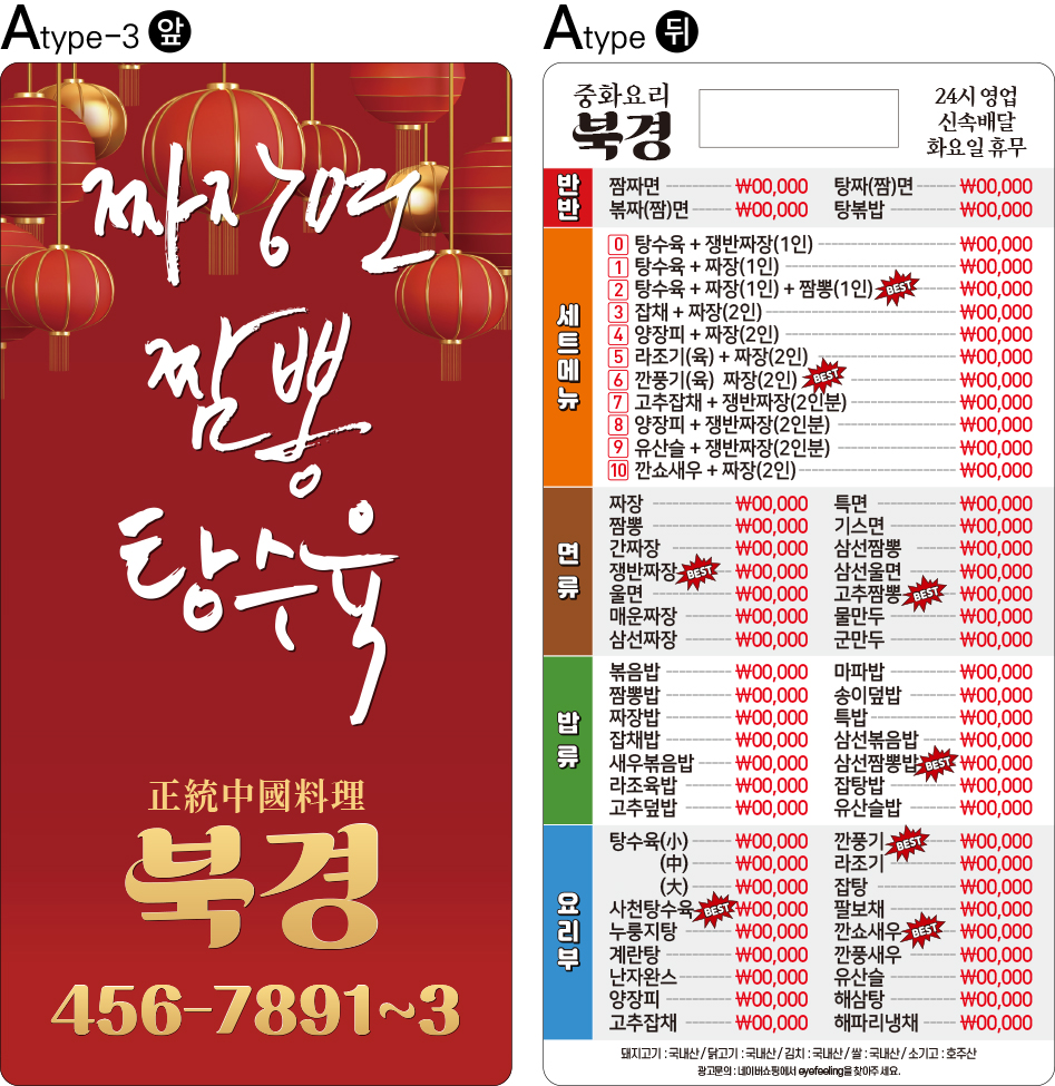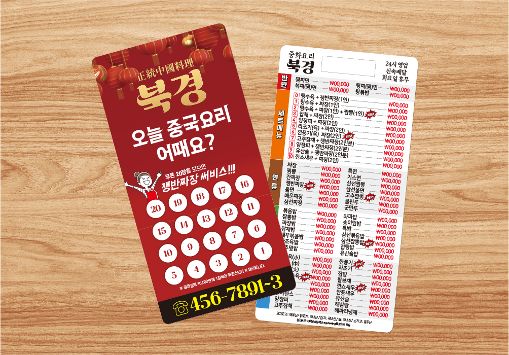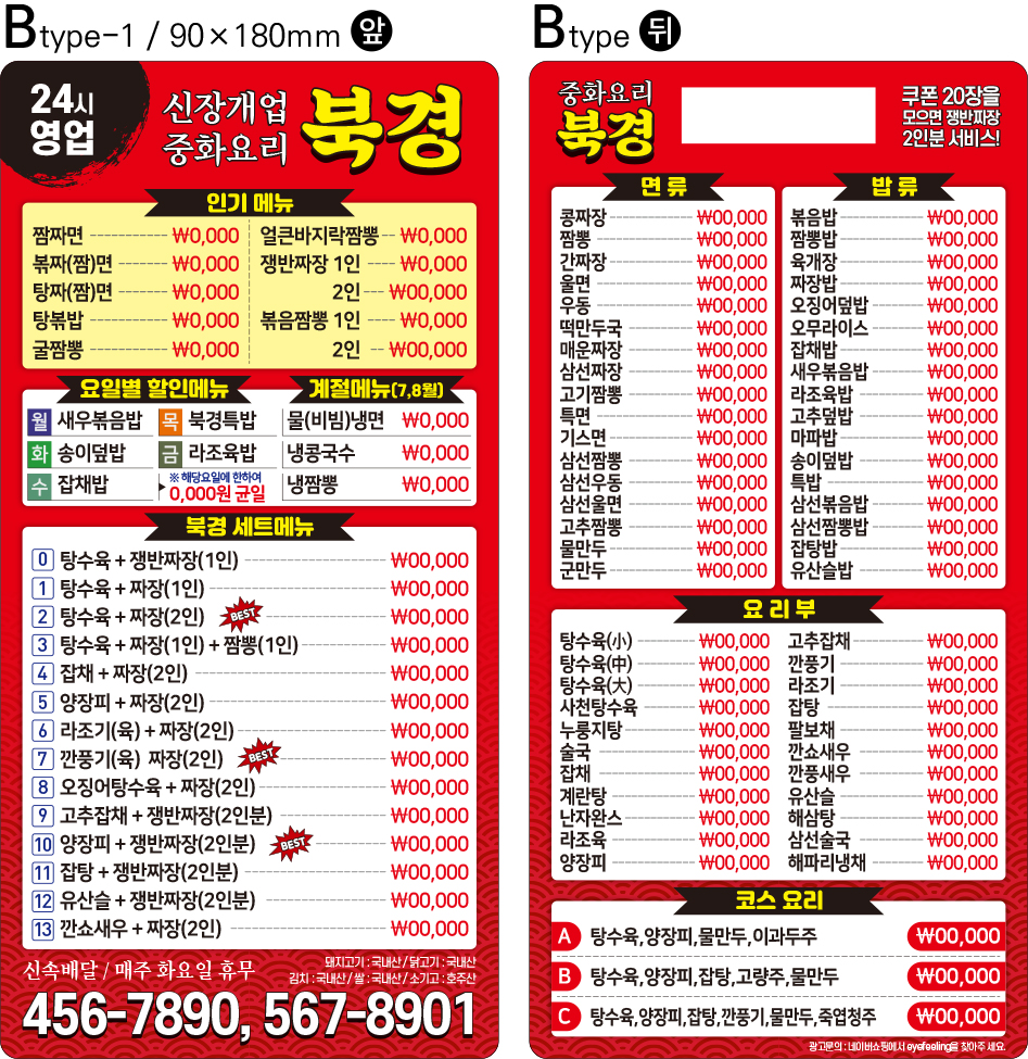 중국집 중국요리 메뉴 배달 자석 전단지 디자인 인쇄 제작 만들기
