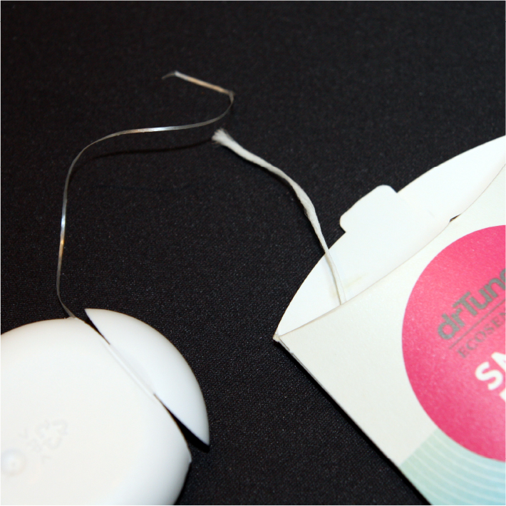 사진에서 볼수 있듯 닥터텅스의 치실은 얇은 실들이 모여서 만들어진 구조이다.