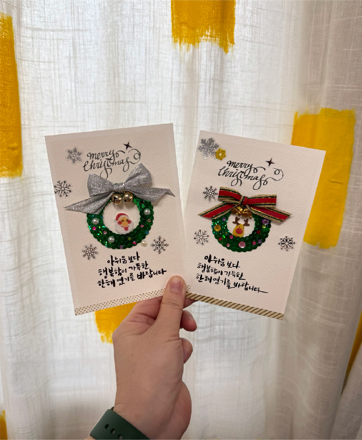 손수 만든 카드다. 이런 카드를 얼마만에 보는지 기억도 안난다. 좋아하는 사람에게 줄 선물 고르듯 기쁜 마음으로 재료와 색상을 골랐을 거다. 선물은 받는 이도 주는 이도 기쁘게 만드는 것이니 말이다.
