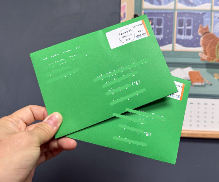 고지서, 전단지 정도나 담아 왔을 우편함이 오랜만에 이야기가 담긴 카드를 받았겠다.