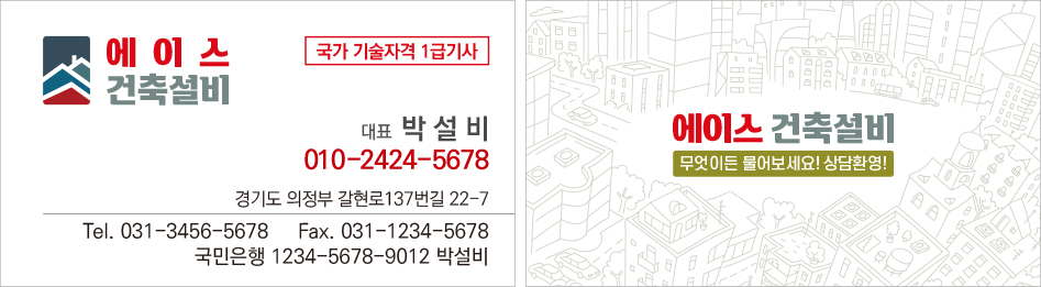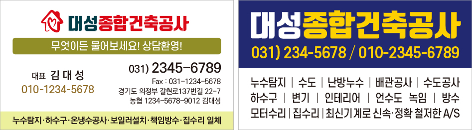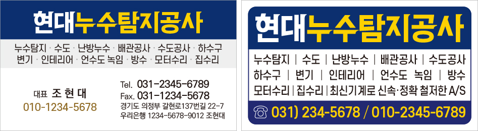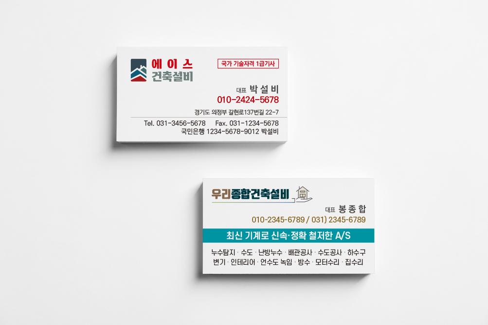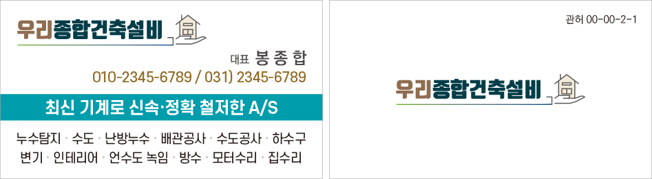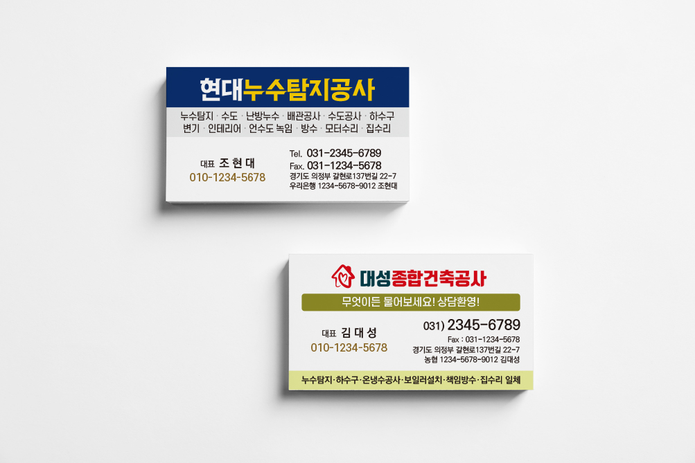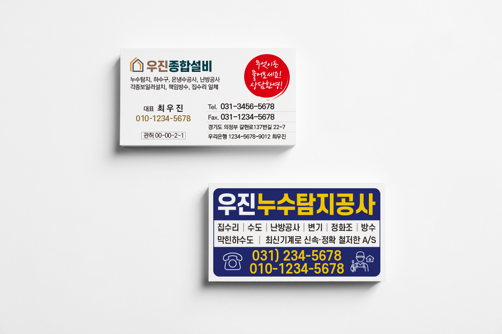 건축설비 누수탐지공사 인테리어 명함 디자인 인쇄 제작