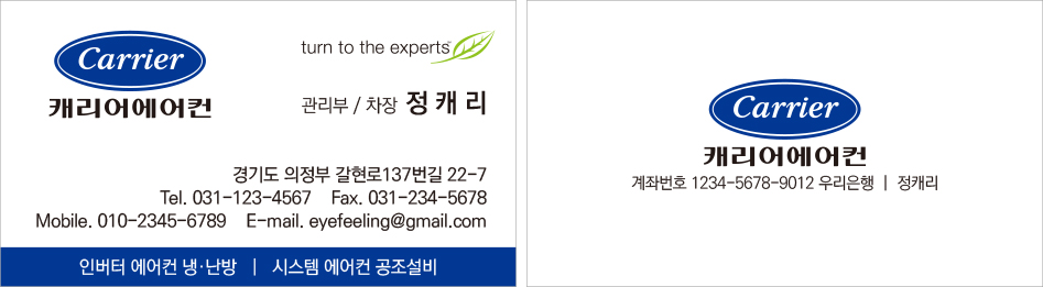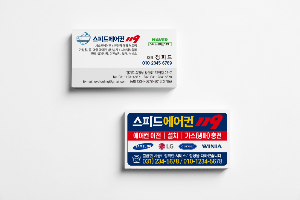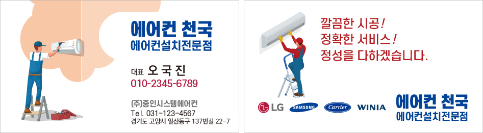 캐리어 삼성 LG 엘지 위니아 에어컨 명함 냉난방기 에어컨 설치 렌탈 청소 홈케어 서비스 명함 디자인 인쇄 제작 만들기