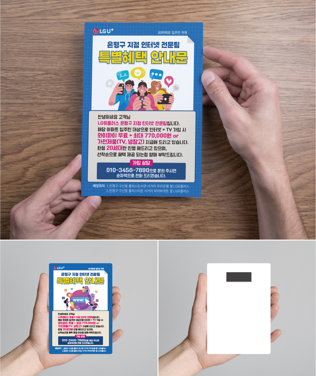KT인터넷 Sk브로드밴드 LG유플러스 인터넷TV 1년 약정 가입 신청 설치 와이파이 광고 전단지 3type