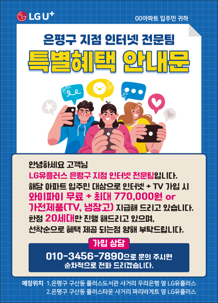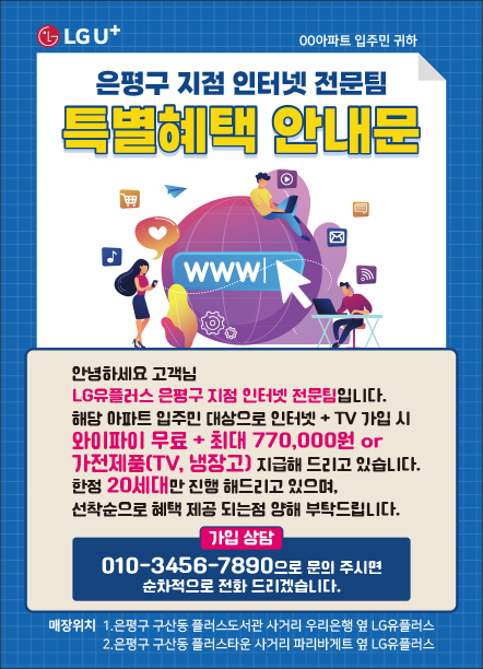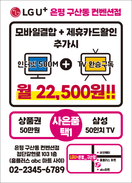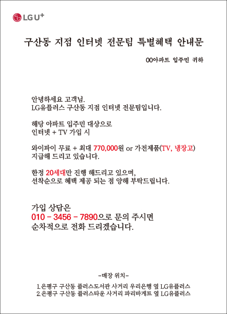 KT인터넷 Sk브로드밴드 LG유플러스 인터넷TV 1년 약정 가입 신청 설치 와이파이 광고 전단지 제작 인쇄