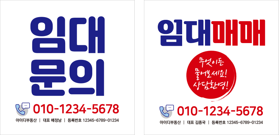 부동산 공인중개사 광고 현수막 상가 임대 매매 분양 현수막 1, 2type