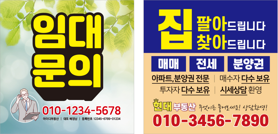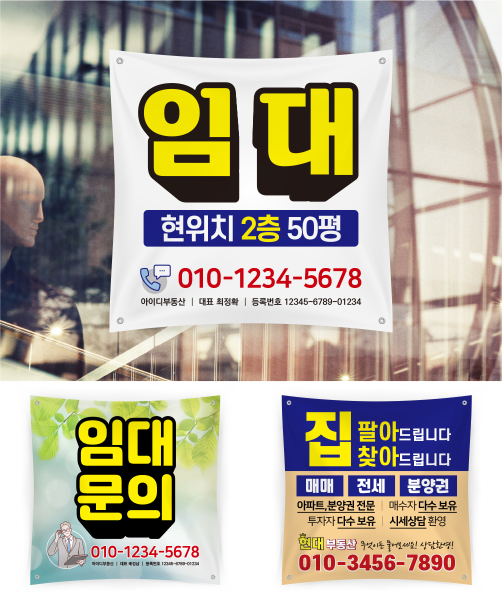 부동산 공인중개사 광고 현수막 상가 임대 매매 분양 현수막 디자인 제작
