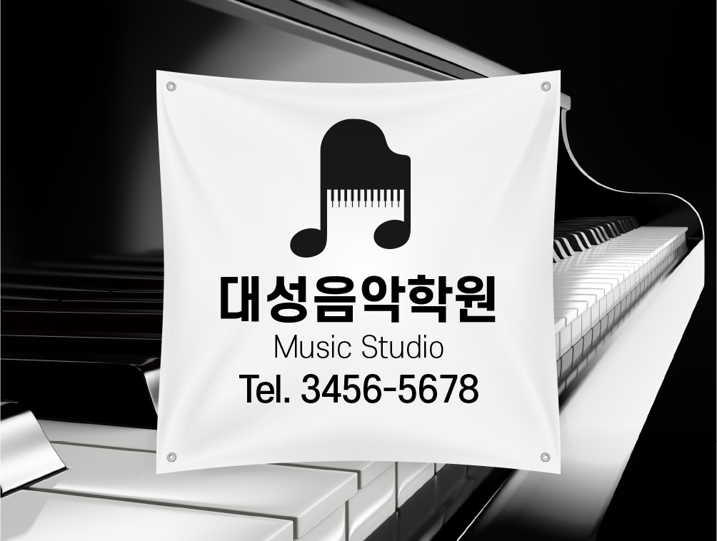 피아노 바이올린 음악 레슨 학원 현수막입니다.