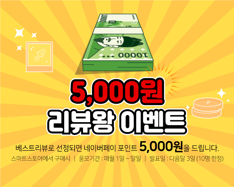 - 다른 사람에게 도움되는 유용한 리뷰 남기시고 5,000원 혜택받으세요.